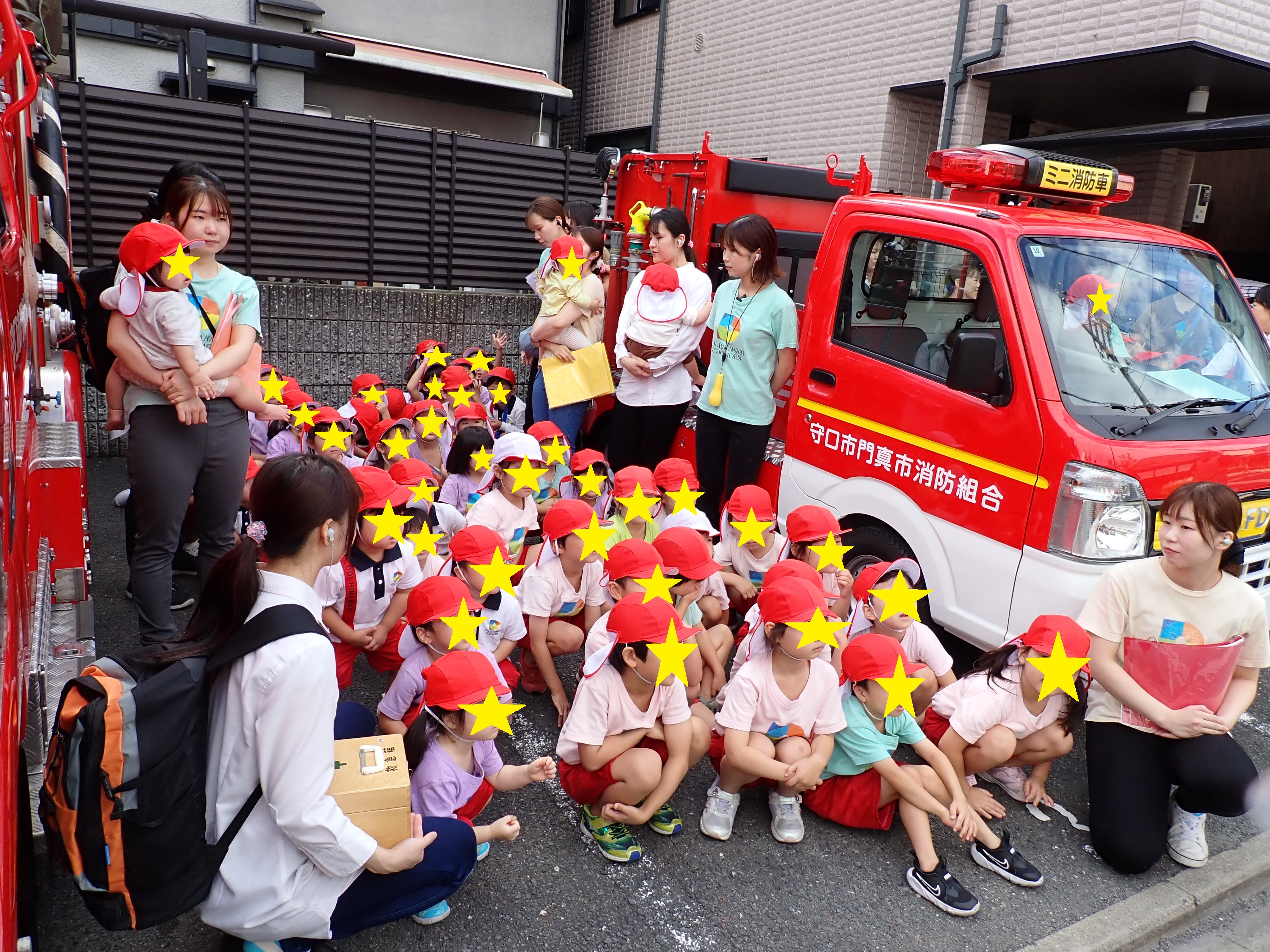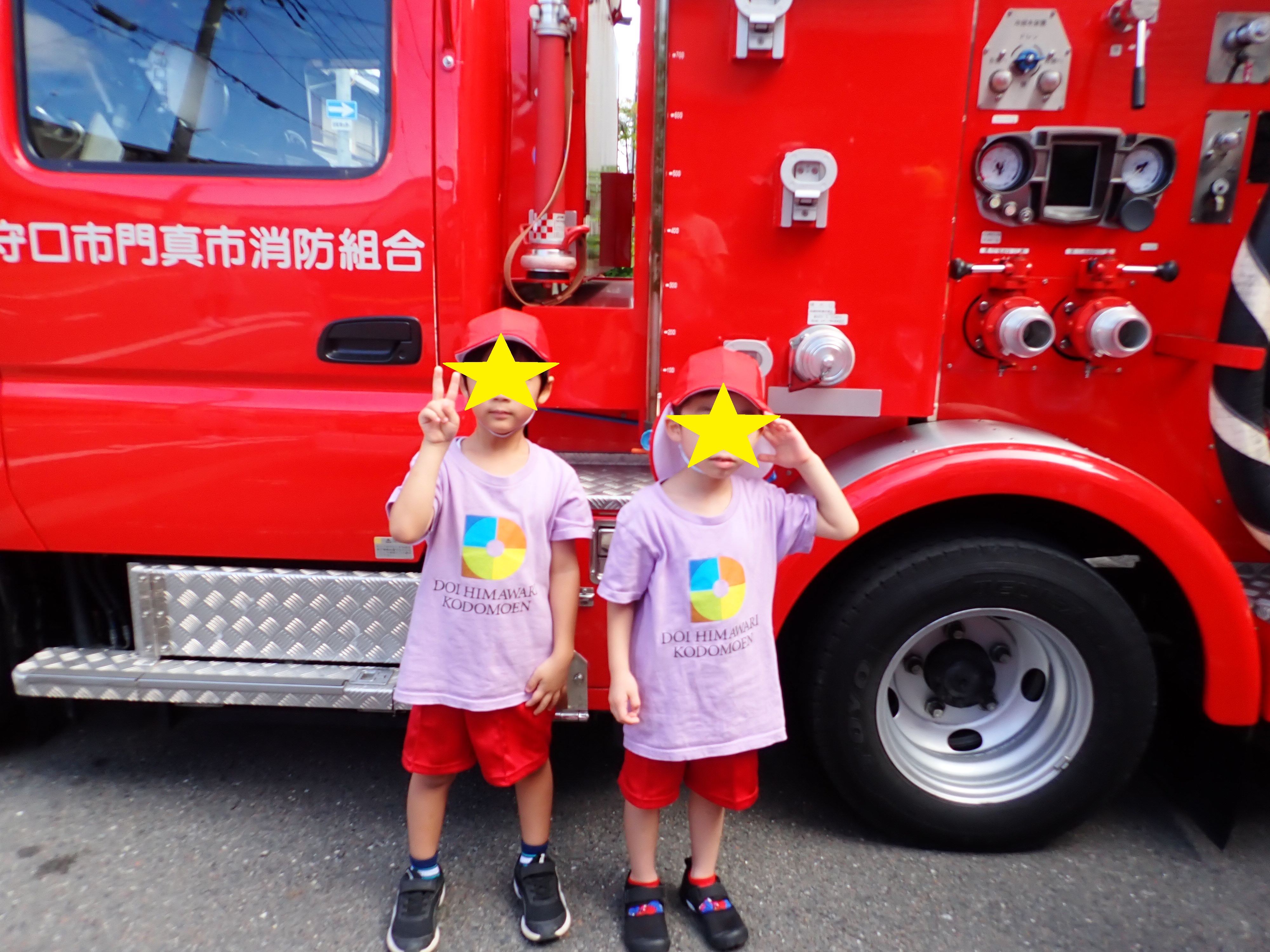 その後は、消防車を見せてもらったり写真を撮らせてもらったり直接、隊員の方から消防車の説明を聞いたりして、子どもたちも興味津々でした。
