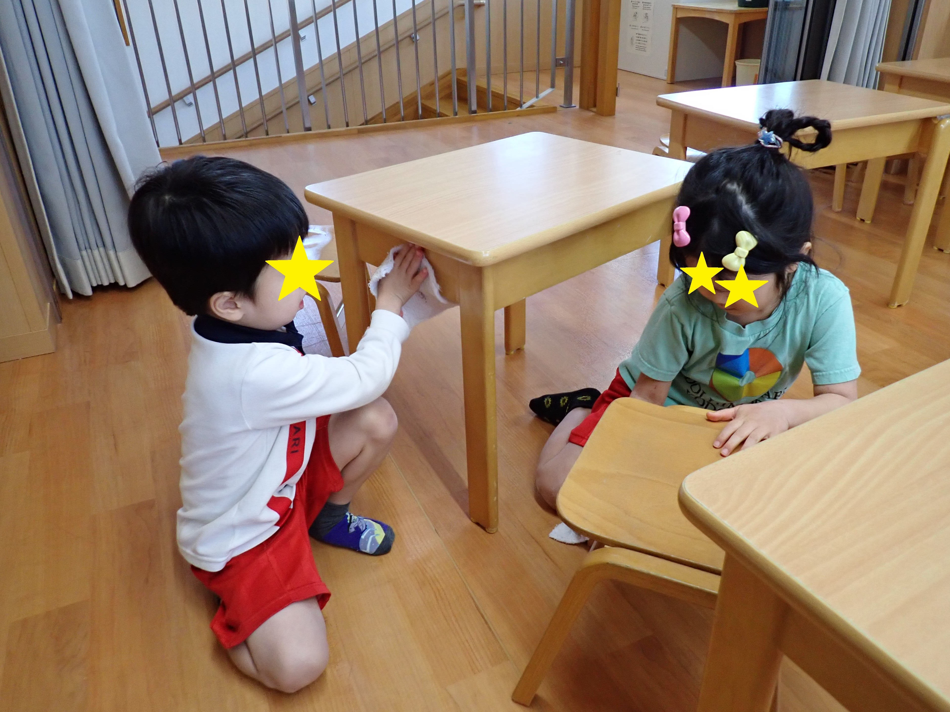 保育室の隅っこの汚れにも気付いてゴシゴシ拭いてくれていました!