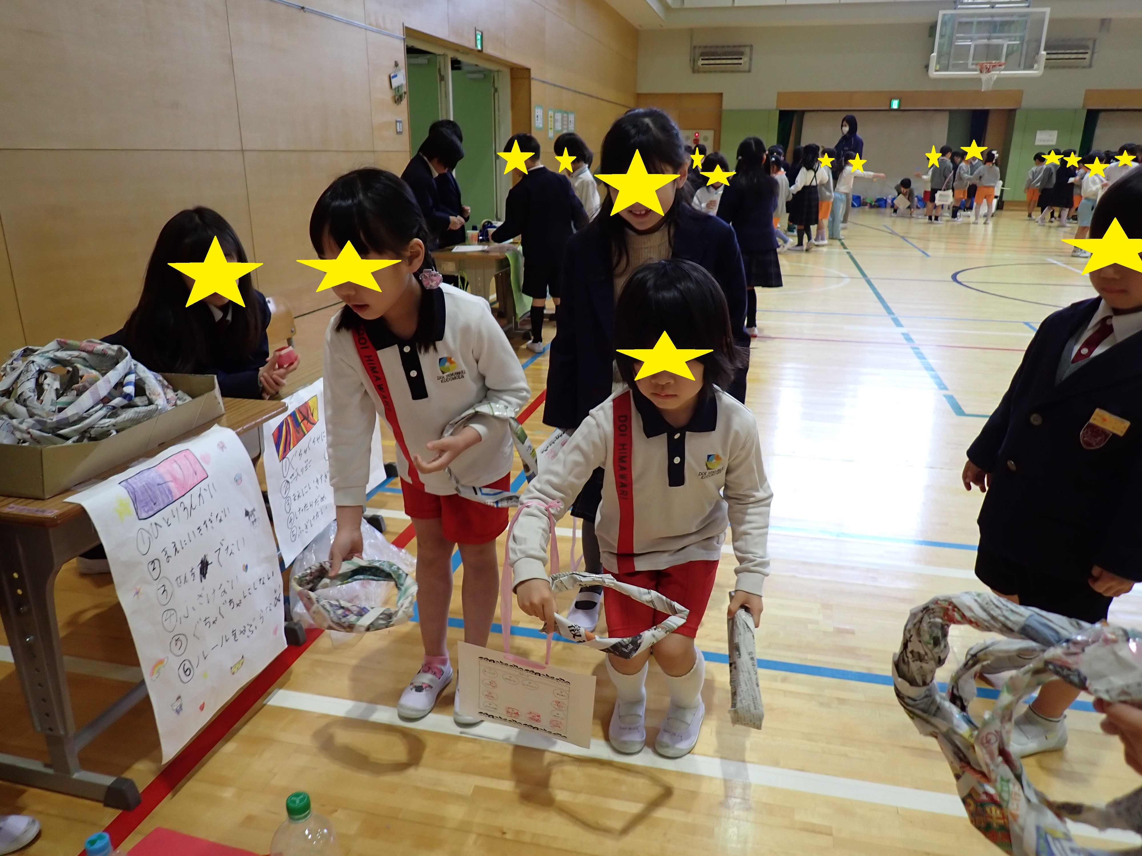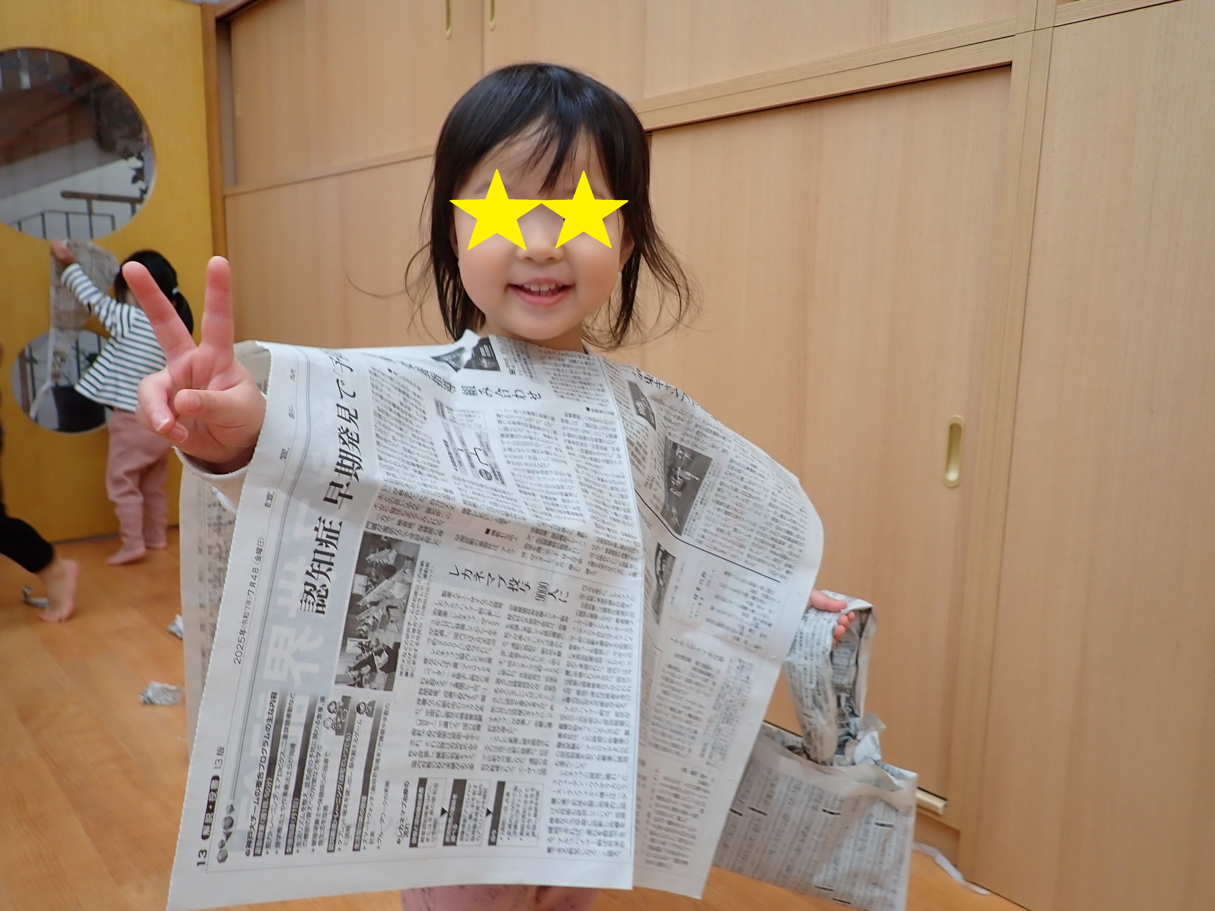 新聞が色々な物や服に変化する様子を楽しんでいた子どもたちでした(*’▽’)