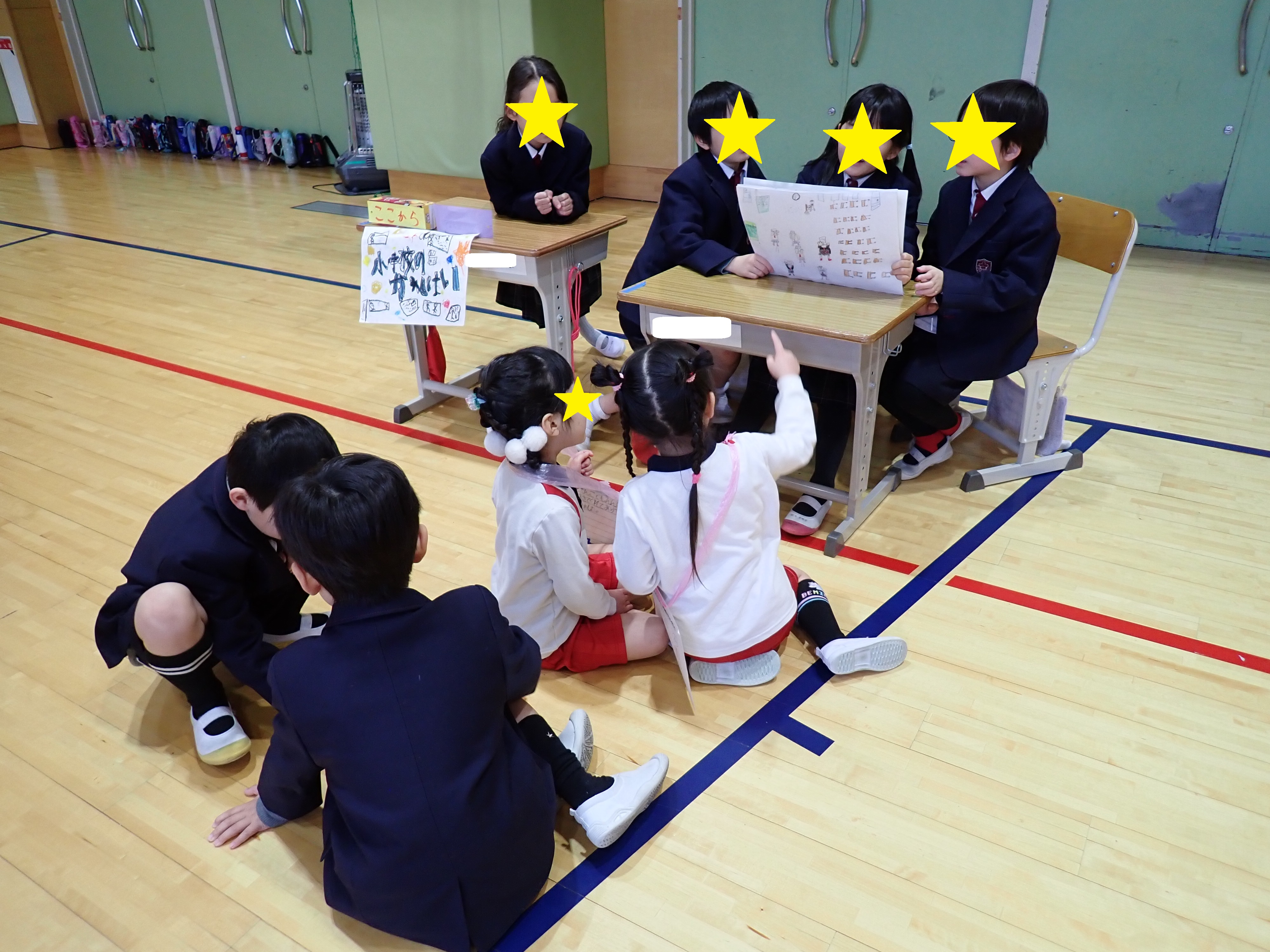4月から1年生になる子どもたちにとってドキドキワクワクの交流会。到着したら、小学校1年生のお兄さんとお姉さんに迎えられ少し緊張した様子でした。体育館には1年生たちが心をこめて作成してくれた様々なゲームを準備してくれていました(*´▽`*)