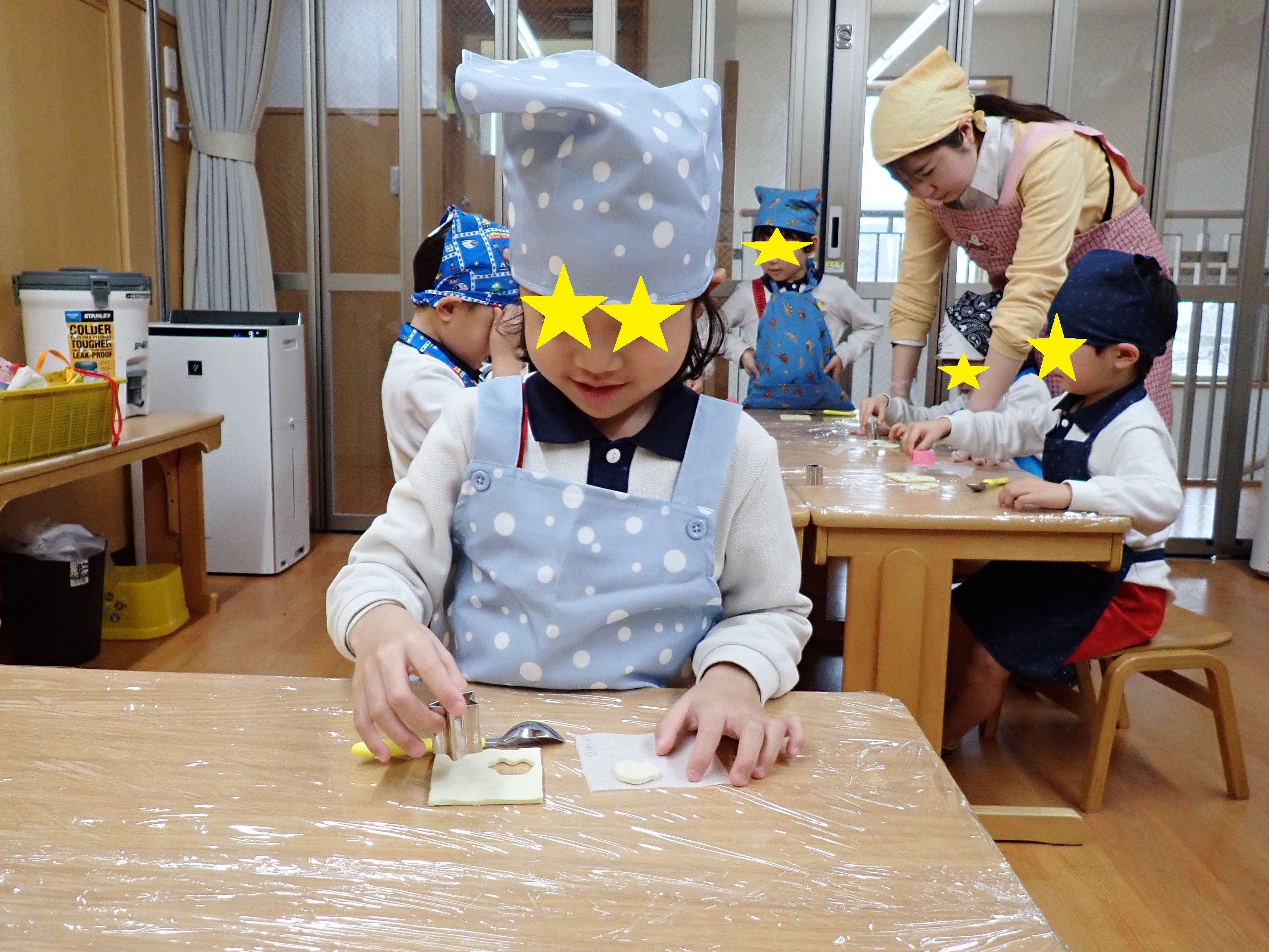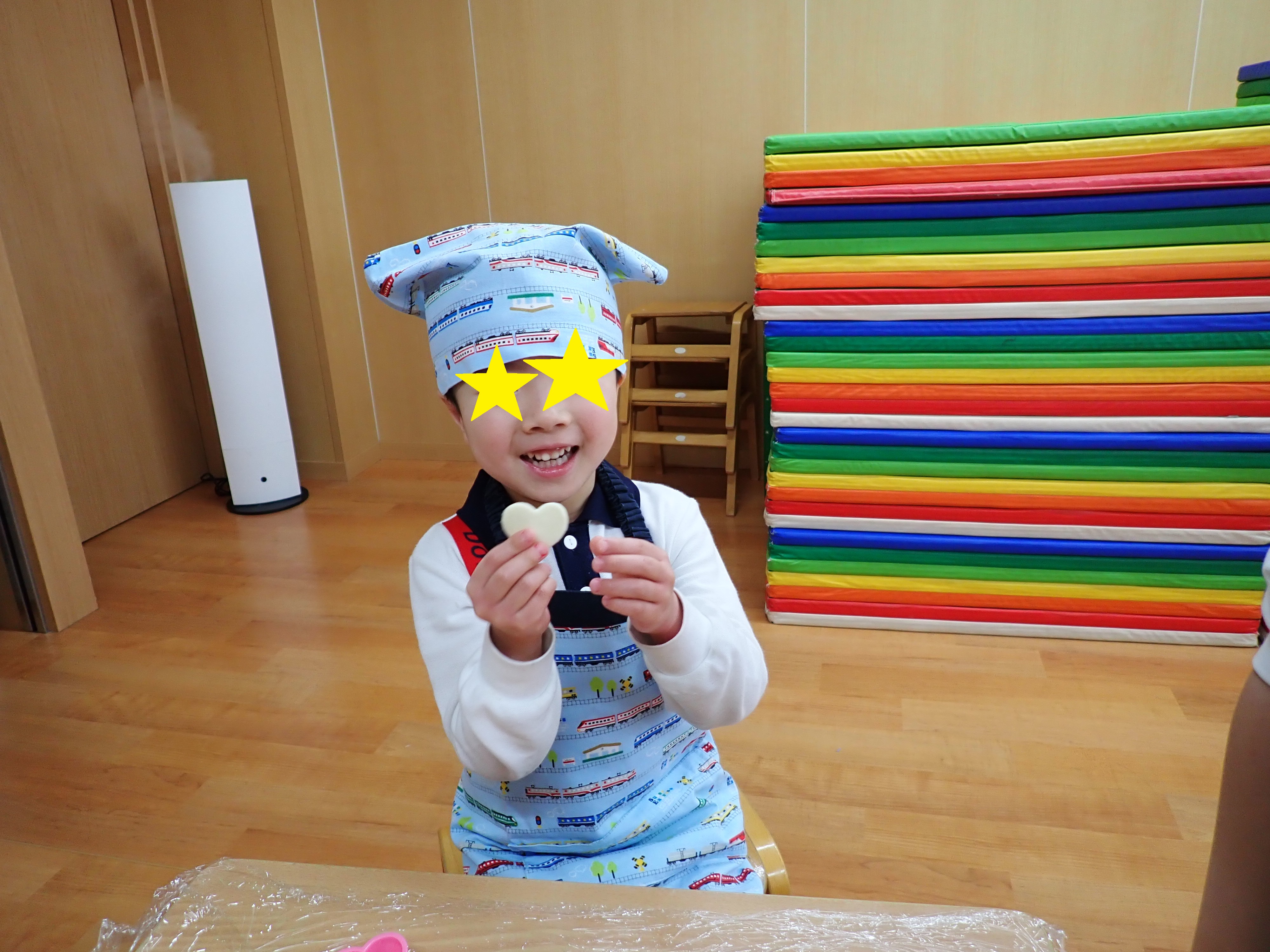 こんにちは!大阪府守口市の土居ひまわりこども園です。2月9日、一足早くバレンタインの雰囲気を味わった4.5歳の子どもたち。午後から自分たちでハートパイを作りましたよ♪