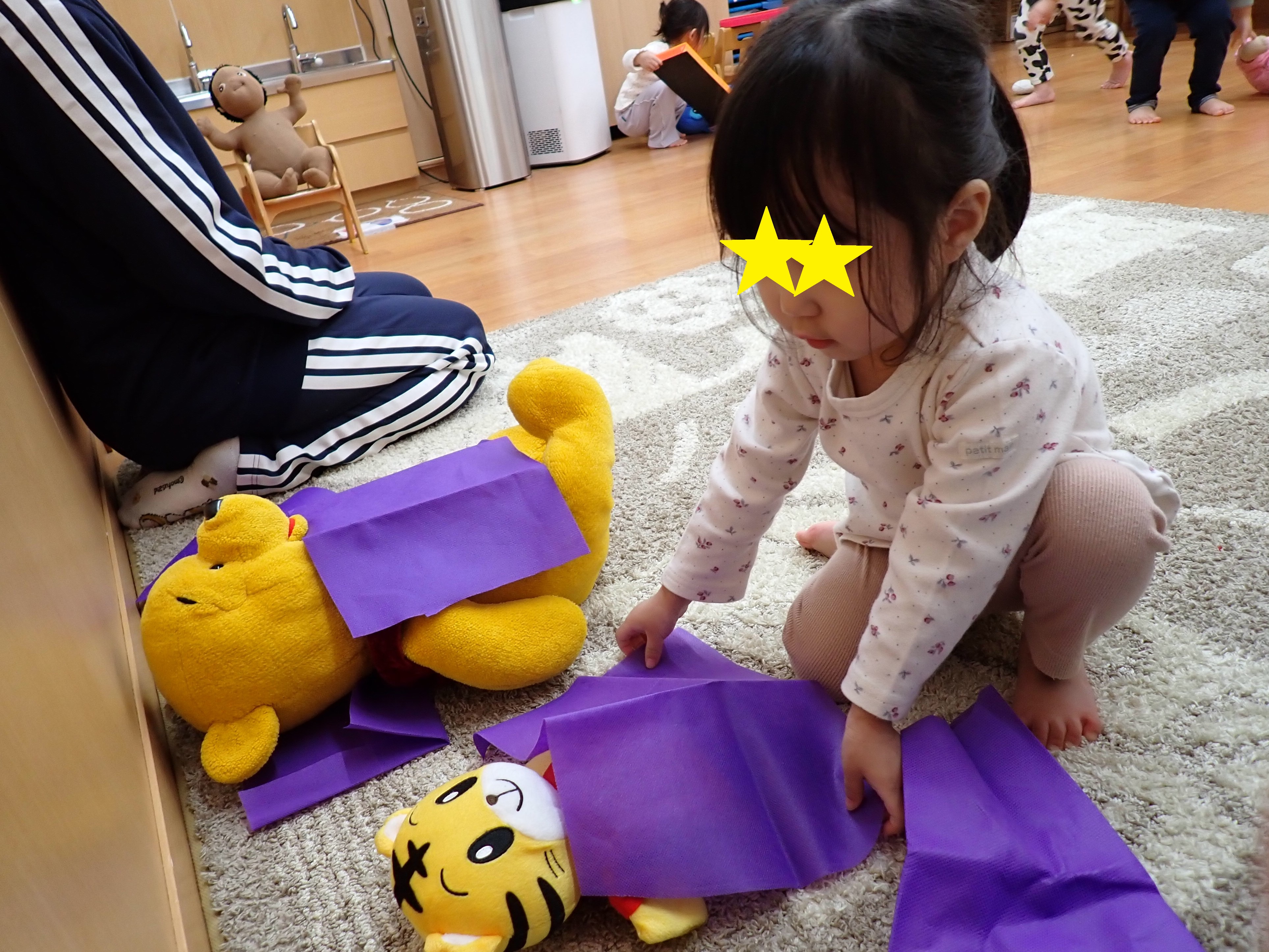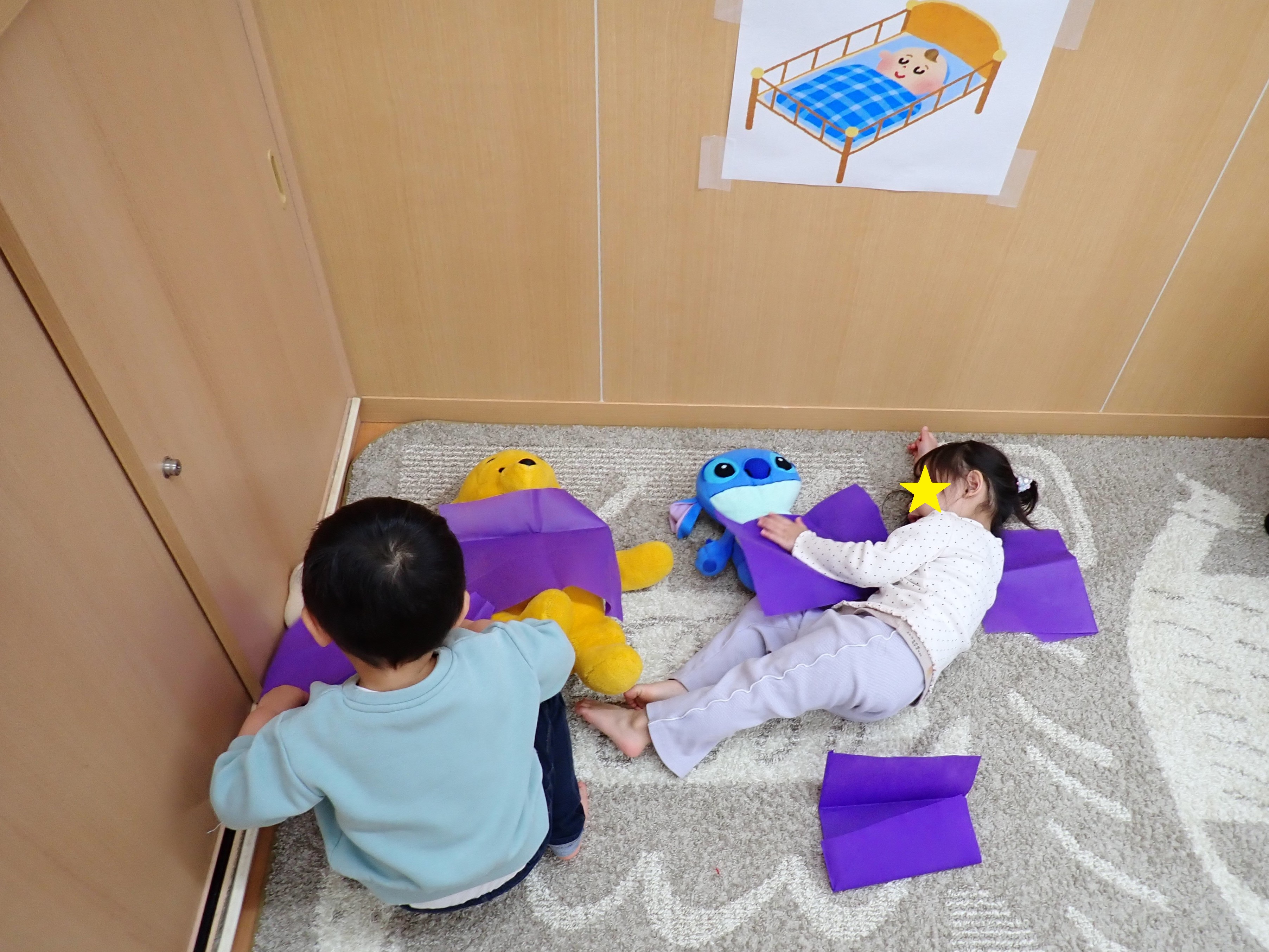 早速、お昼寝コーナーで優しく布団を被せてくれていましたよ~