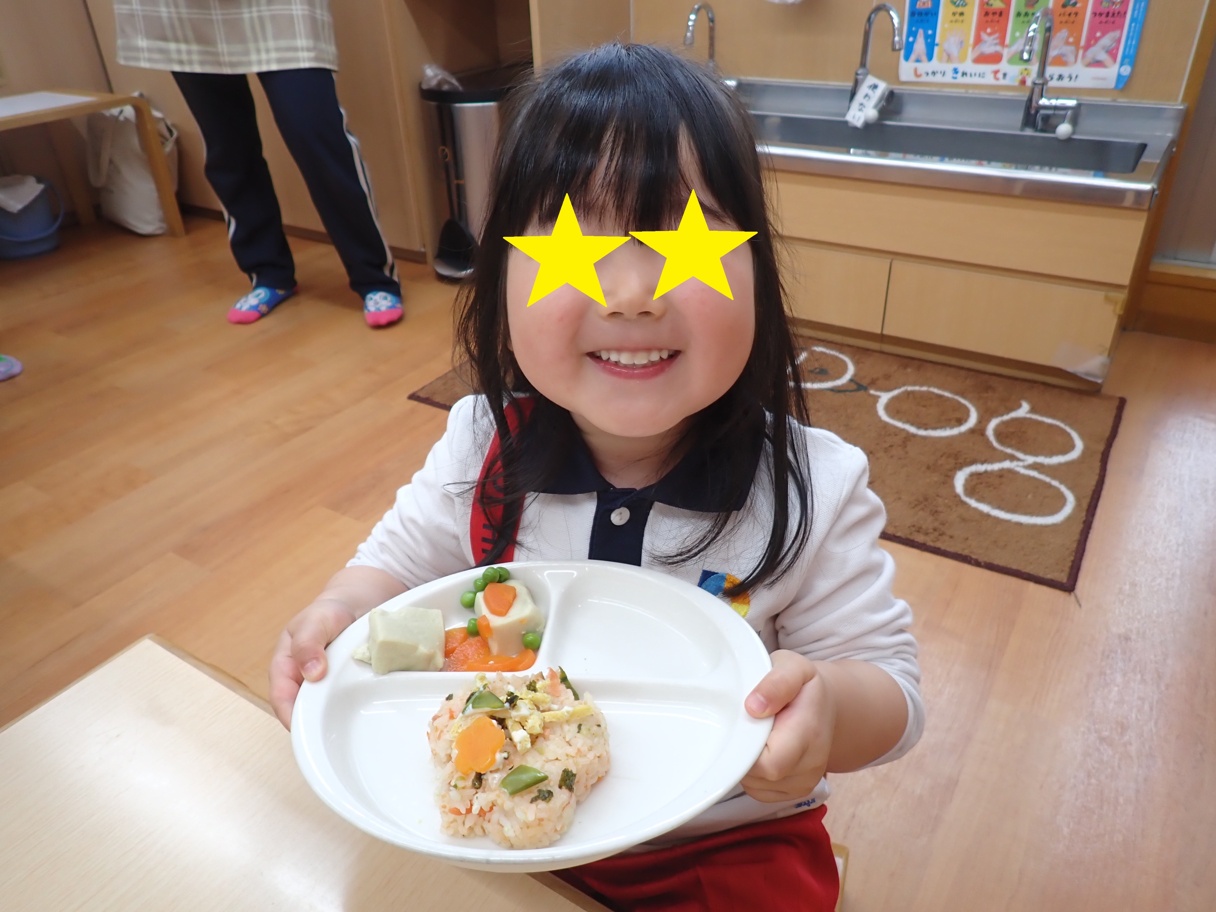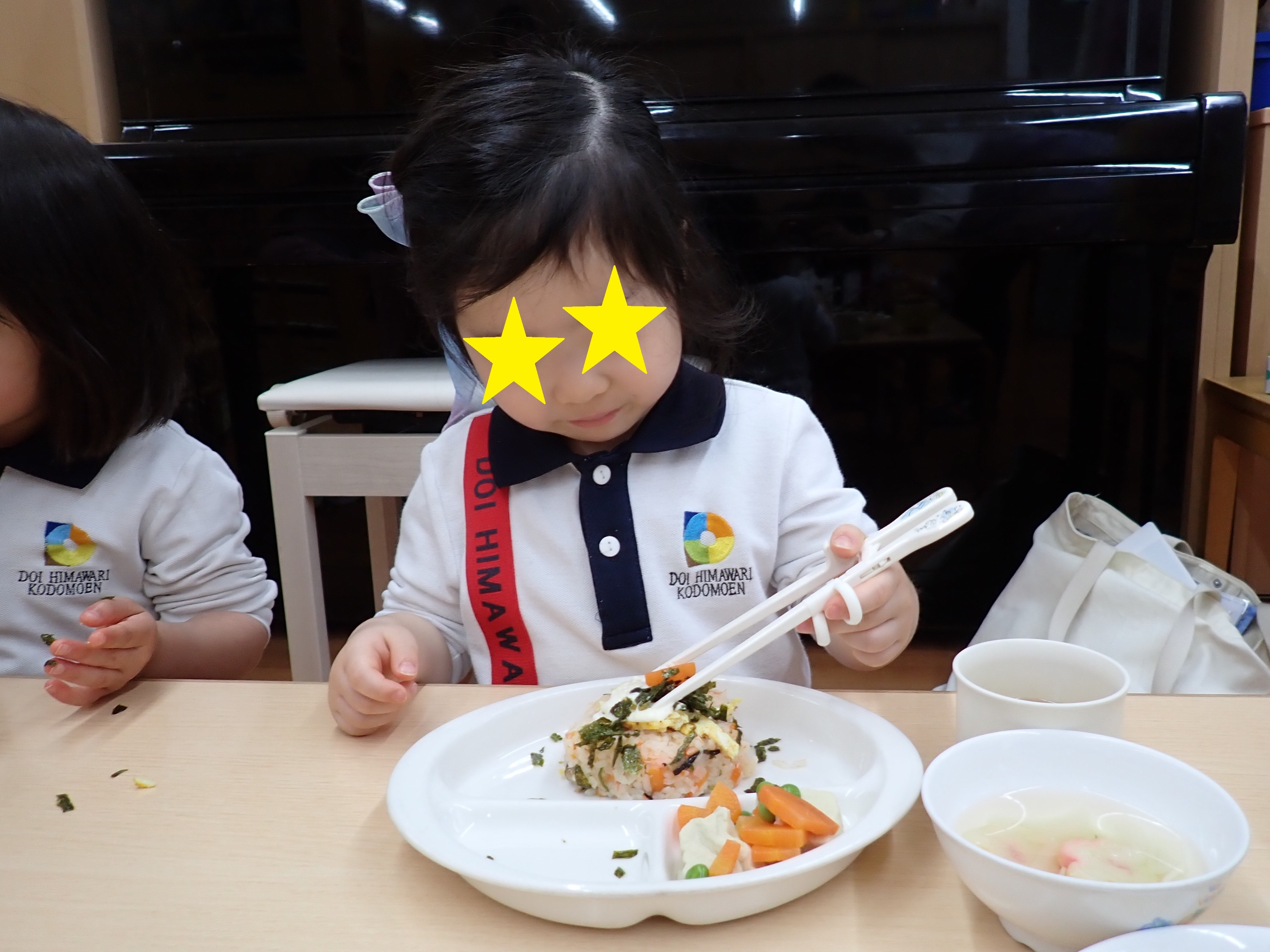 食事コーナーでは、せっせとごはん作りに精を出し「いただきまーす」と言ってお世話に忙しそうでした♪