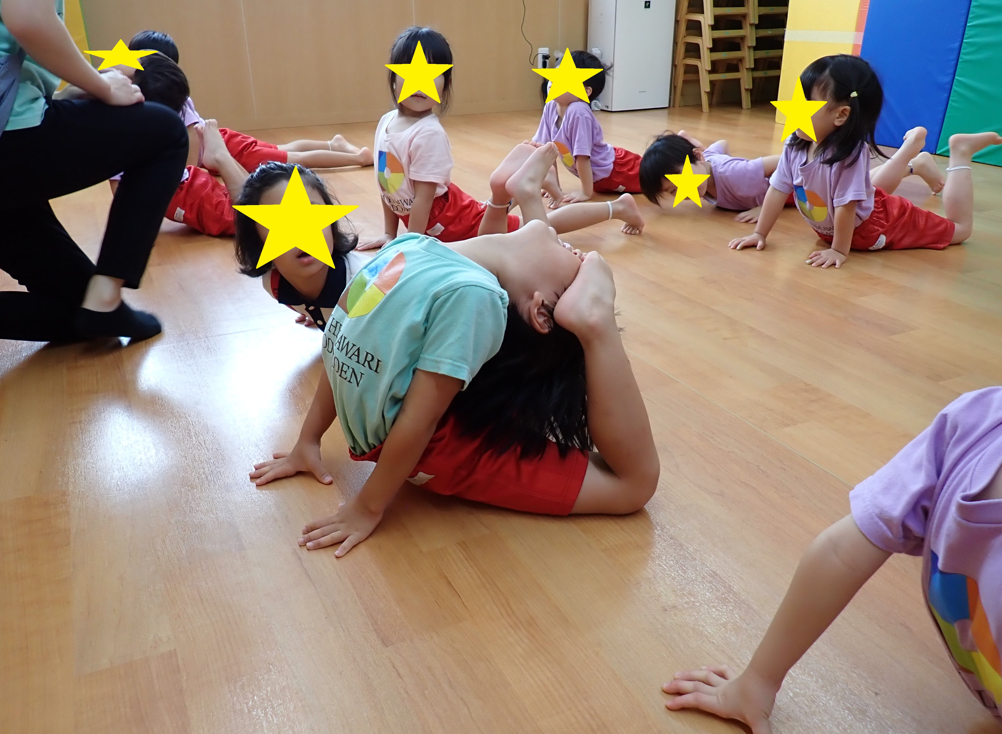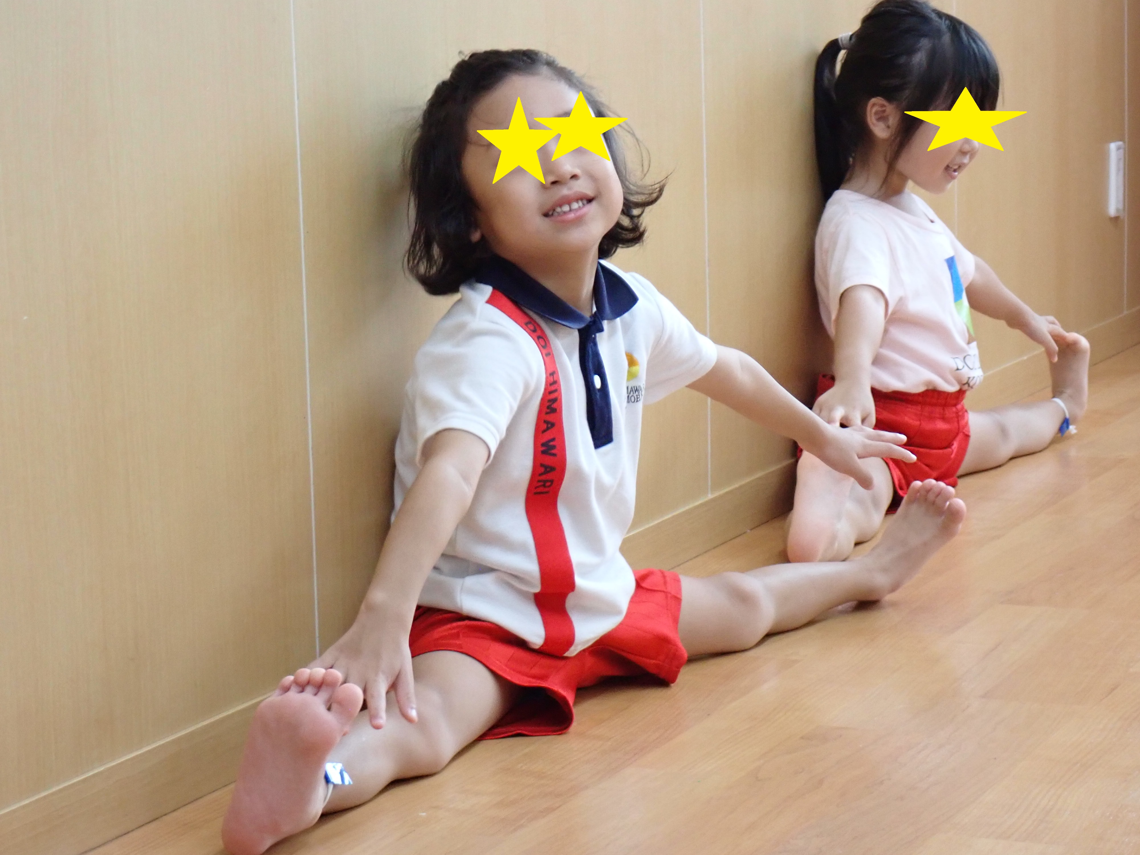 体を動かすことが大好きな子どもたち。先日、体操をしていた4歳児こすもす組さんが柔軟体操をしていました。体が柔らかい子どもたちですが、その柔らかさにびっくり!