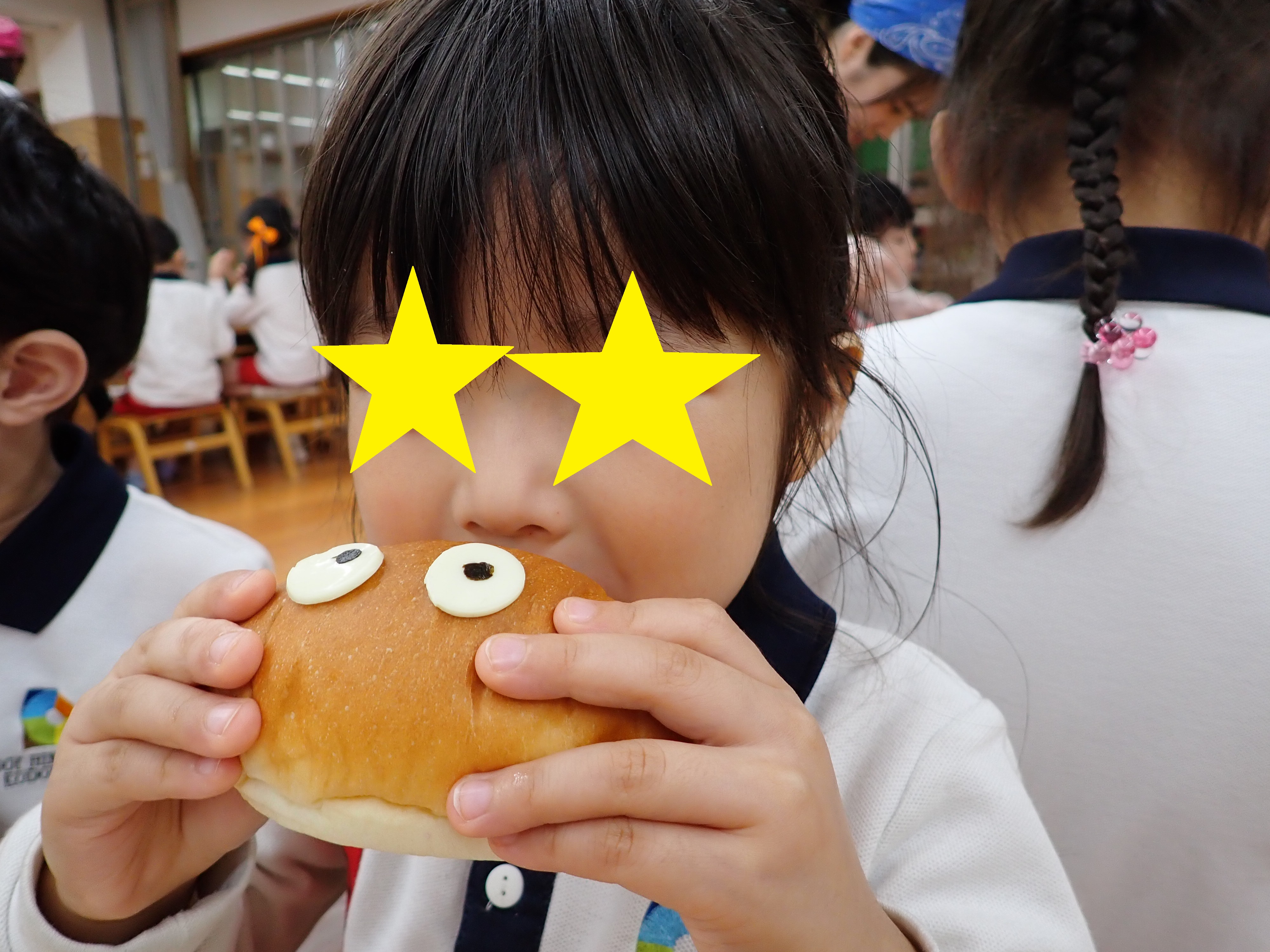 給食は、グループ毎に分かれて楽しくいただきましたよ~(*´▽`*)今日は、お化けサンド。子どもたちも喜んでくれました♡