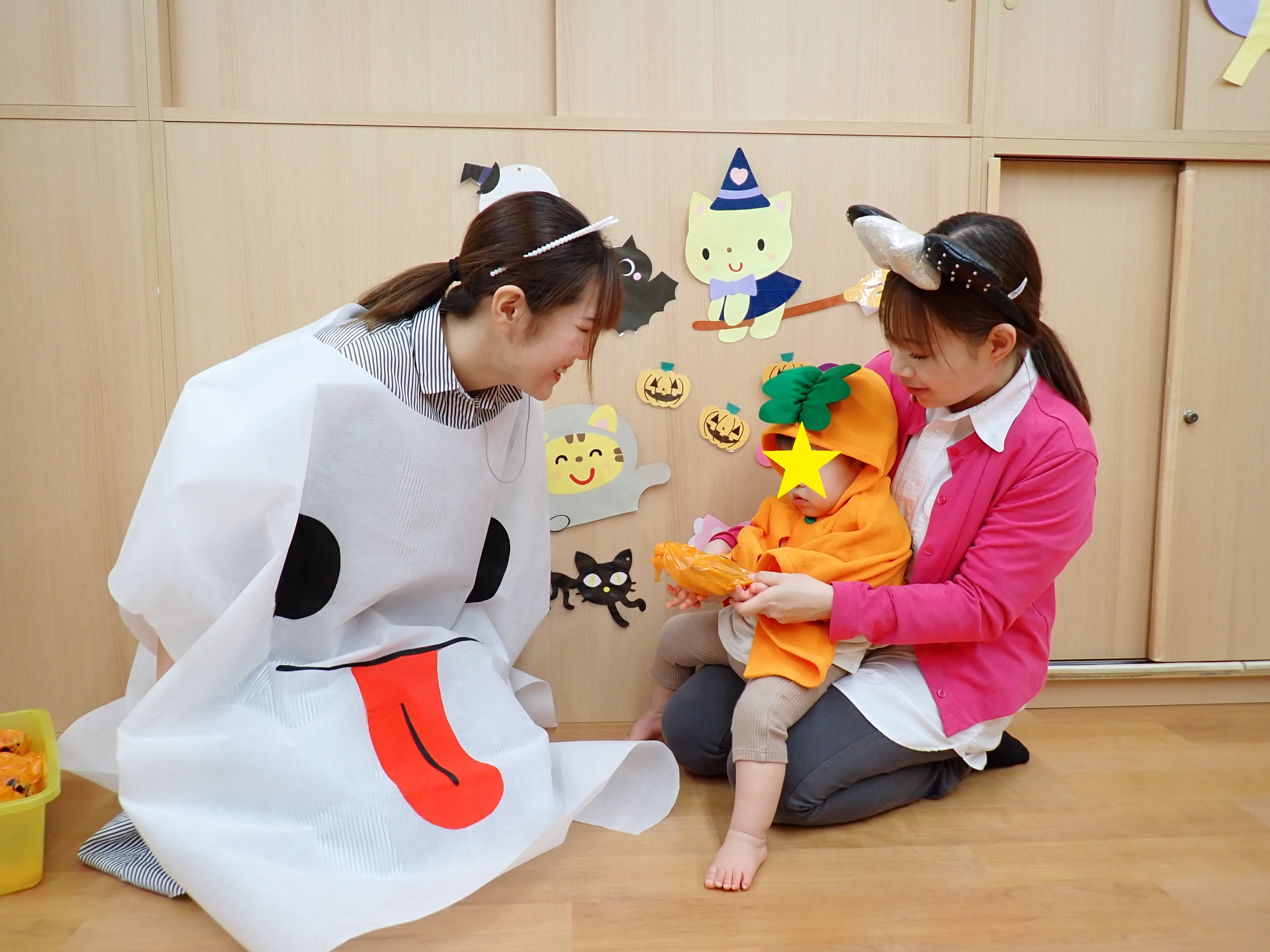 012歳の子どもたちは、お部屋にお化けさんやジャコランタンが来てお菓子をもらいましたよ♪