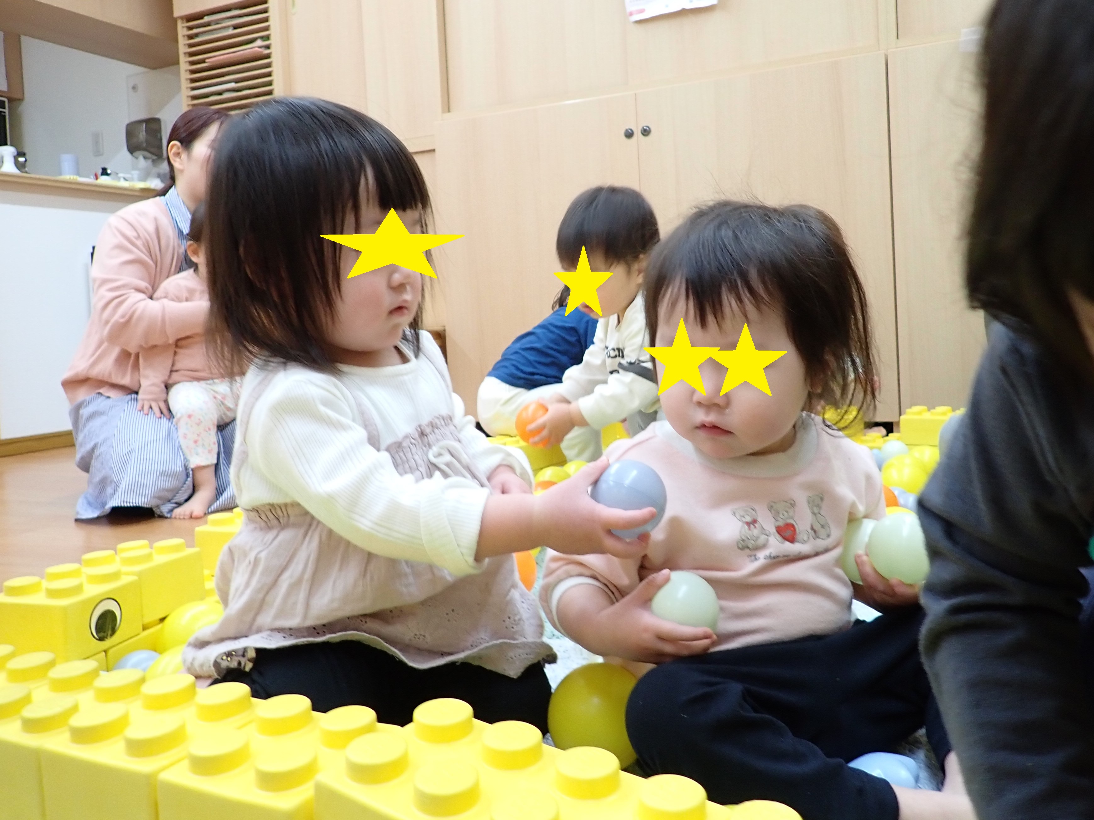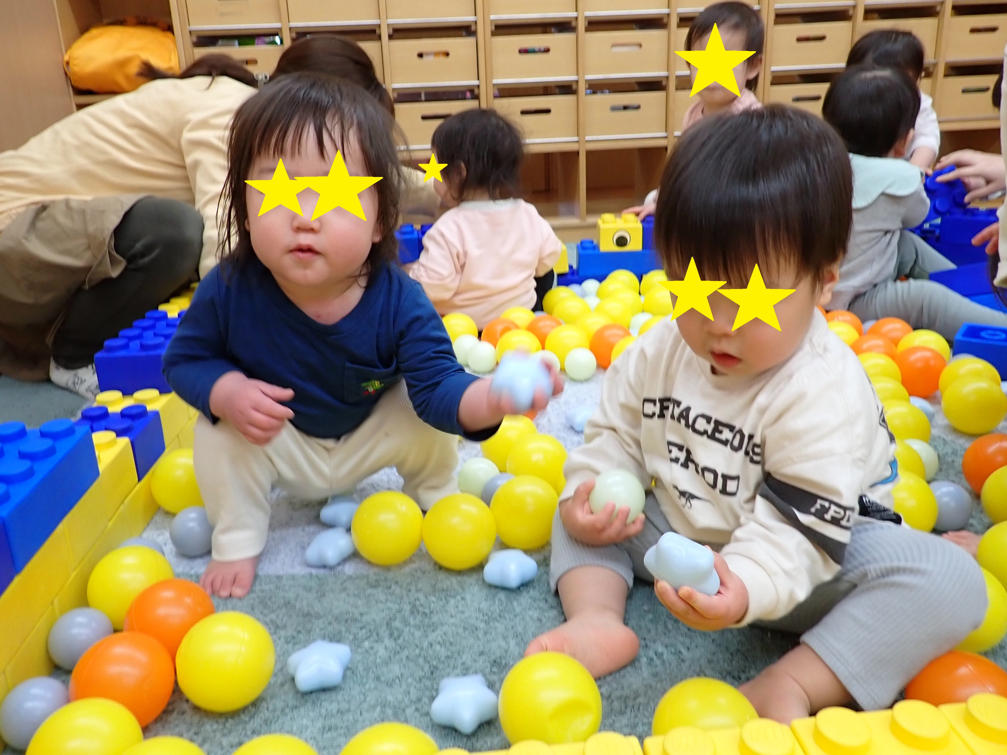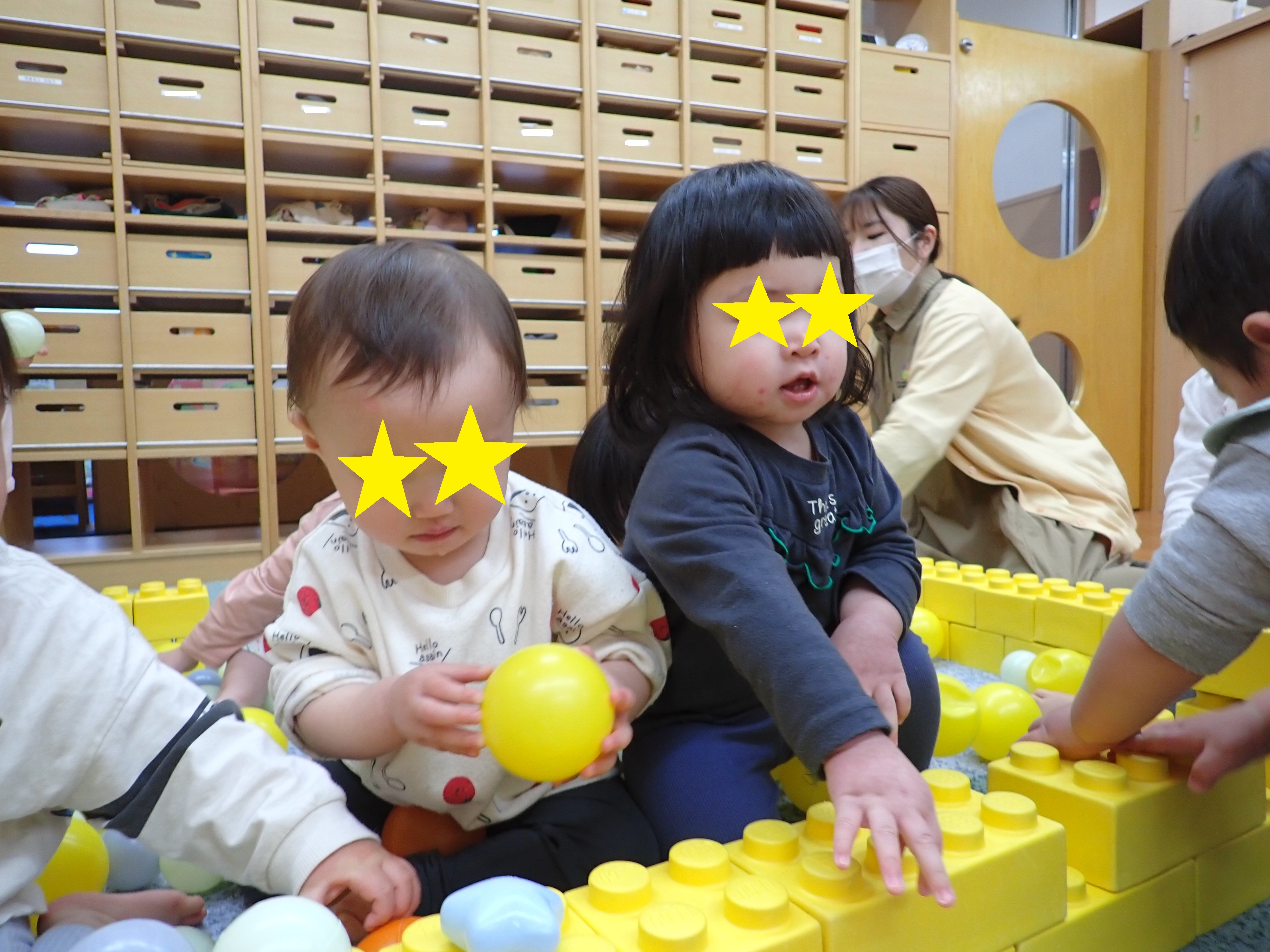 先日、0歳児ちゅうりっぷ組さんがボールプールを作って遊んでいたので、その様子です♪