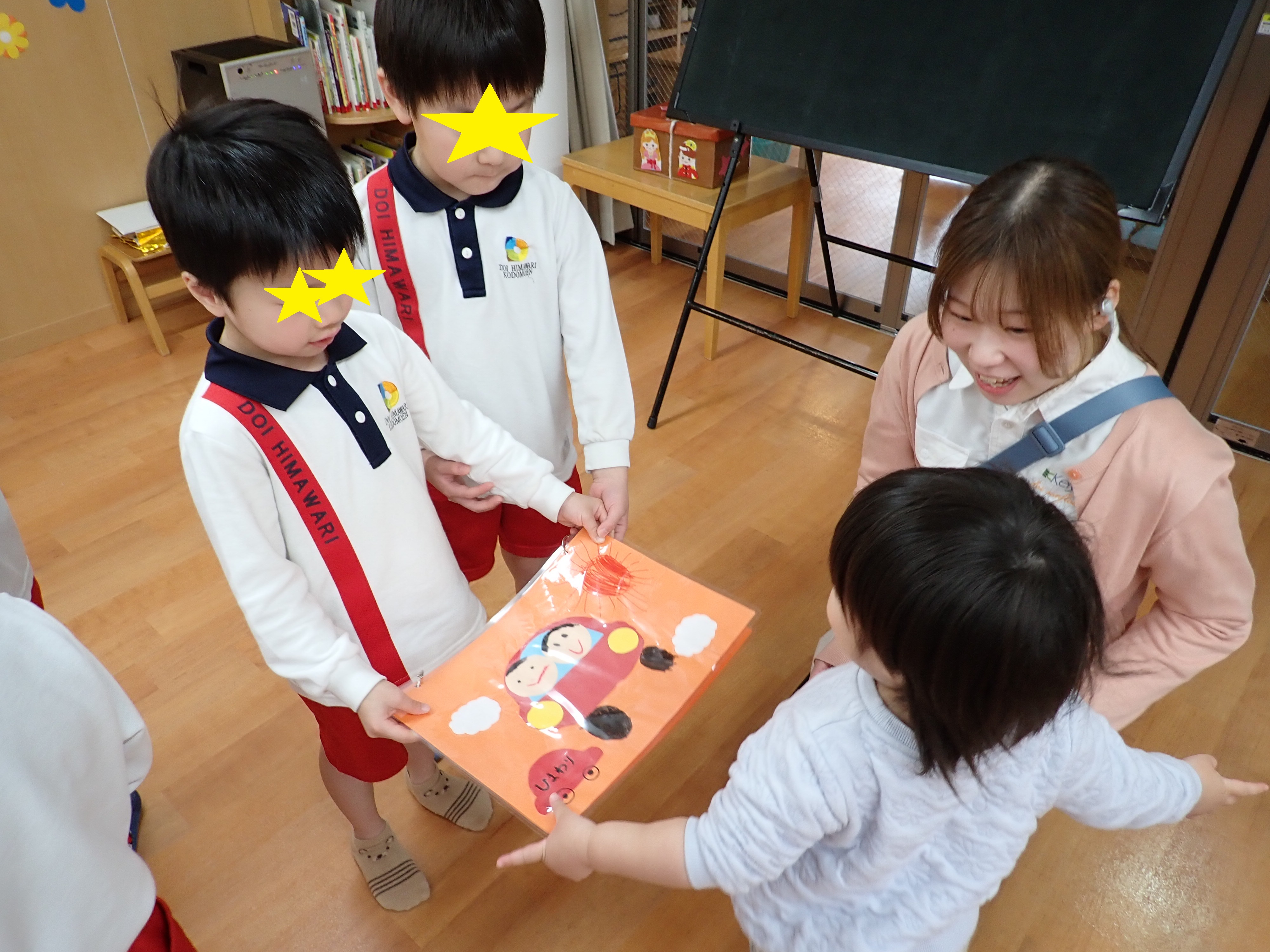 最後は、ばら組さんからみんなに毎年使う出欠簿の表紙をプレゼントしてくれました♪ばら組さん、ありがとう!